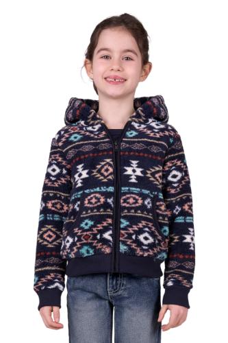 Soft brushed polar fleece jacket with hood; jersey hood lining; front kanga patch pockets; centre front zip fastening with binding detail; rib trim hem and cuffs; Pure Western logo pip on side seam