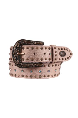 Diamanté studs, starburst and dome studs, removable buckle, Pure Western concho, antique copper hardware. XS(29”), S(32”), M(35”), L(38”), XL(41”), XXL(44”)