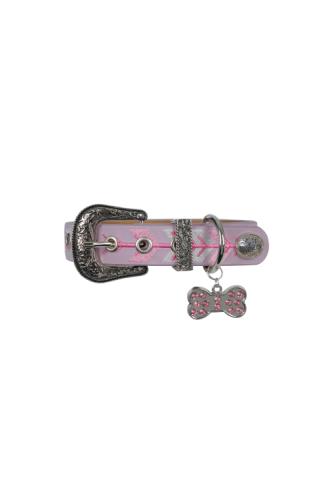 Embroidered strap, diamanté dog bone tag, metal D-ring, Pure Western concho, antique silver hardware