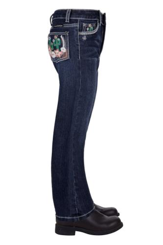 Boot Cut, Stretch for comfort and movement, Mid rise, Adjustable elastic waistband on all sizes, Logo shank button, Metal rivets, Woven logo label on back yoke, Feature embroidery on back pockets and coin pocket, PW embroidery on front pocket, Contrast all over topstitch